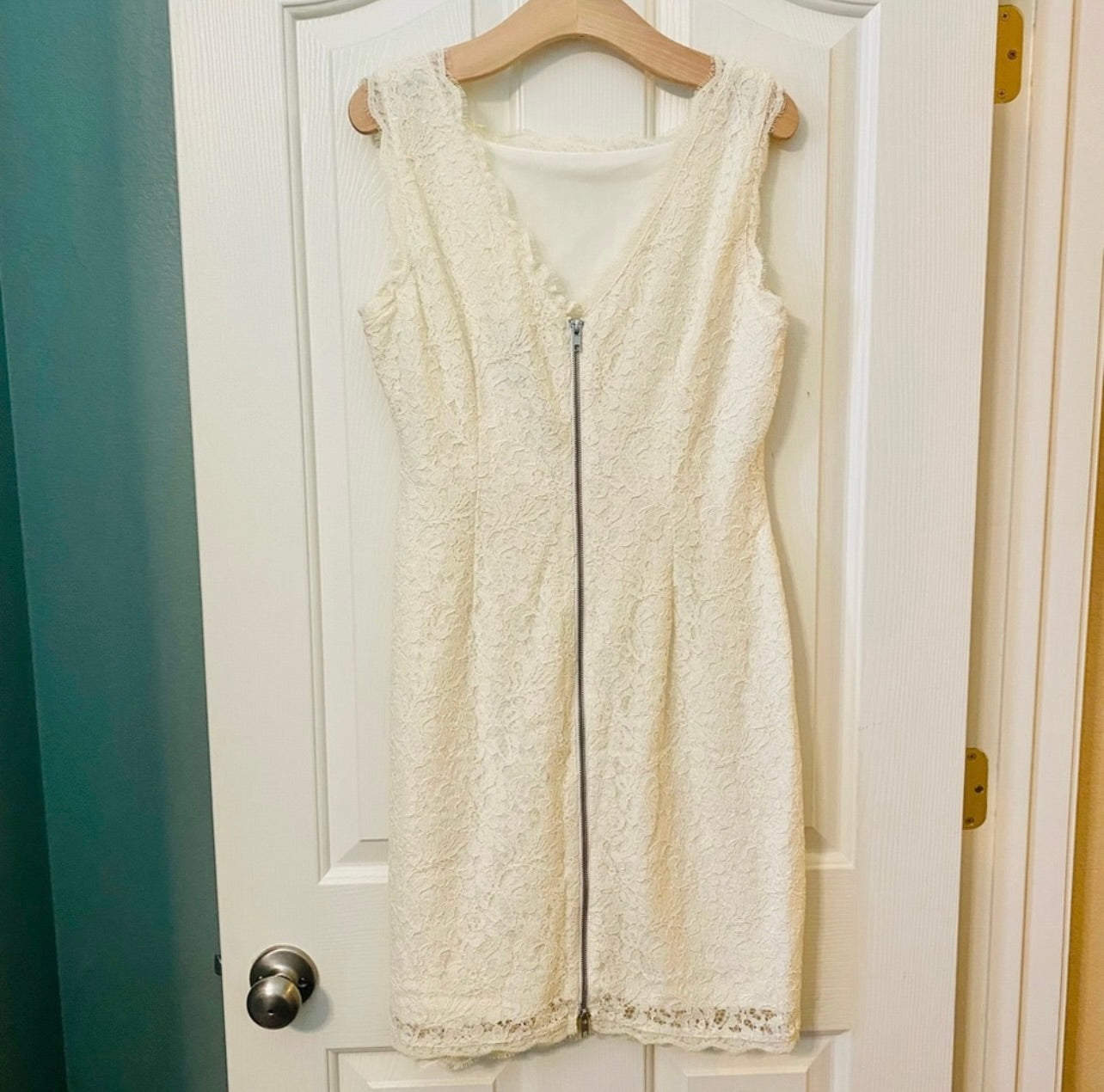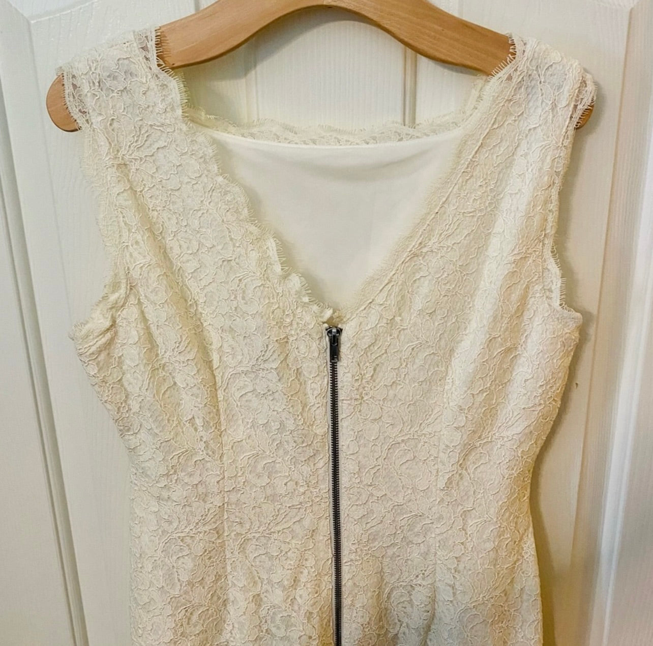 EUC Cache Womens Ivory Floral Lace Sleeveless Sheath Dress
