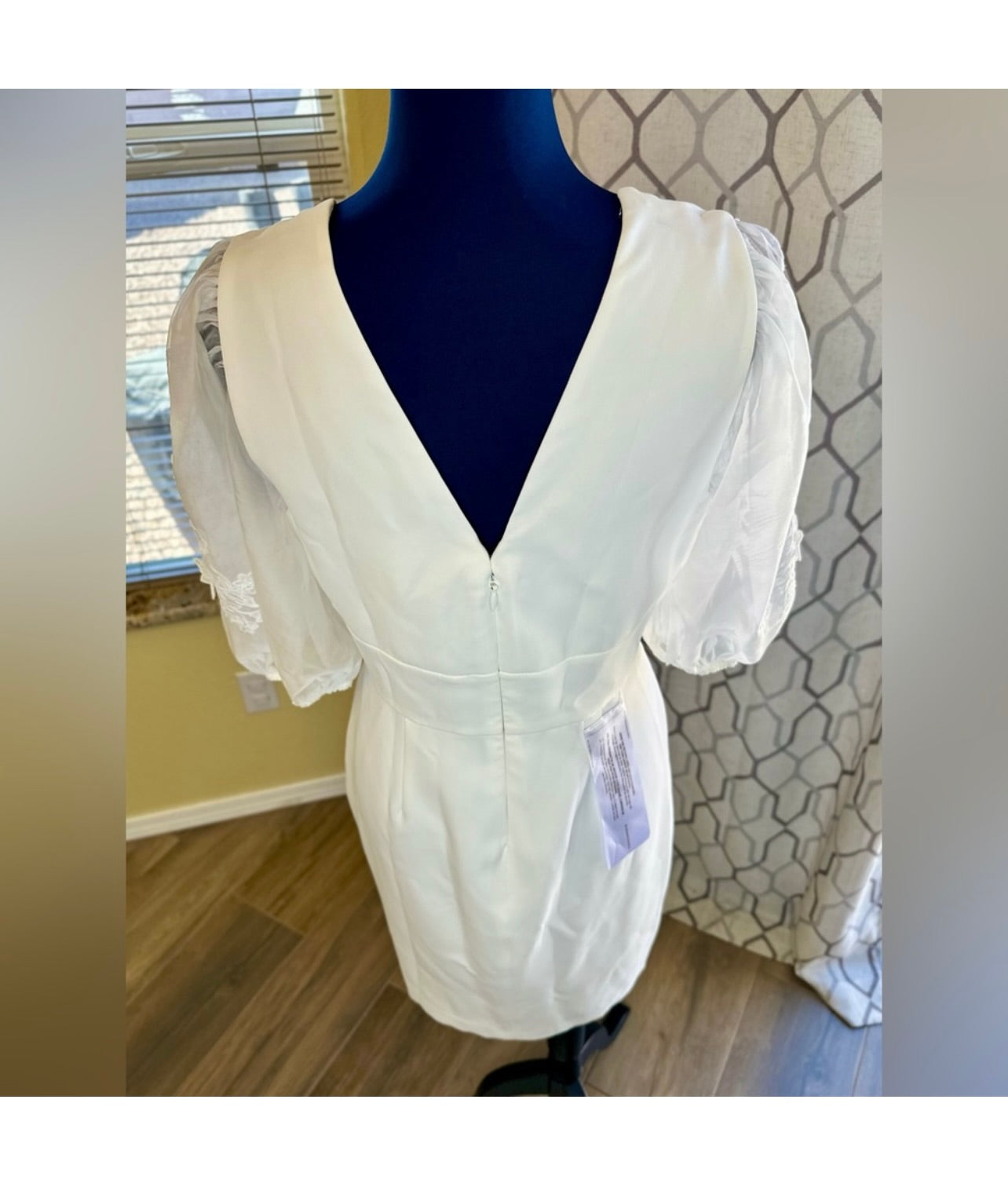 New BCBGMaxAzria Off White Embroidered Sleeve Evening Dress