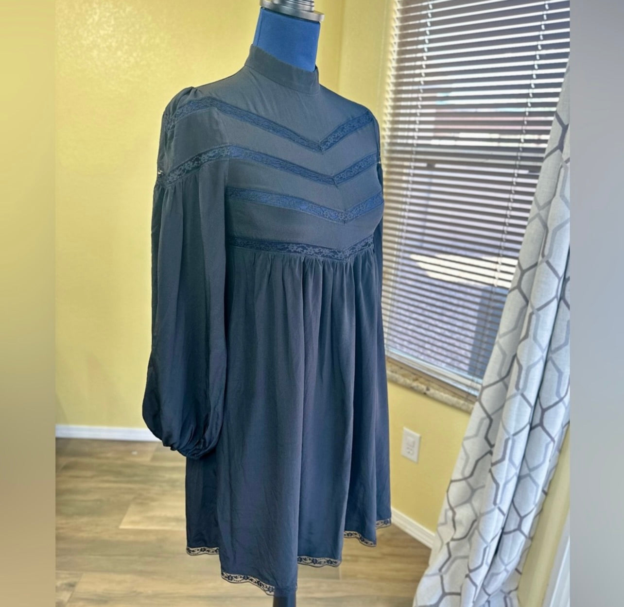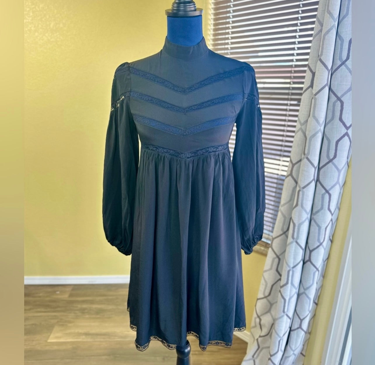 EUC Zimmermann Black Silk Chevron Lace Mini Dress